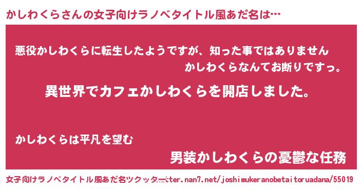 | 意味不明あだ名 | 『永久保存かしわくら』『自称かしわくら』 |