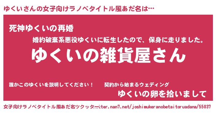 | 男性向けラノベタイトル風あだ名 | 『やはりゆくいの青春ラブコメはまちがっている 』 |