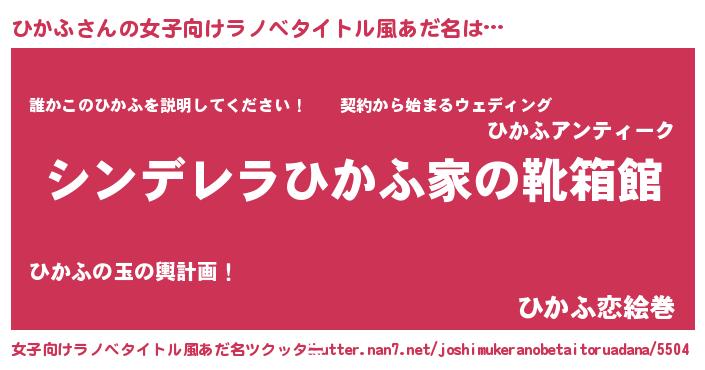 | ヒーロー風カッコイイあだ名 | 『スーパーヒカフ』『慈愛の使者ひかふ』 |