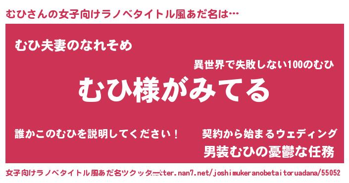 | 男性向けラノベタイトル風あだ名 | 『むひの嫁は女の子じゃないと思った?』 |