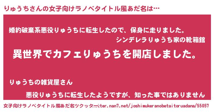 | 男性向けラノベタイトル風あだ名 | 『誰もが恐れるあのりゅうちが、ぼくの専属メイドになるようです。』 |