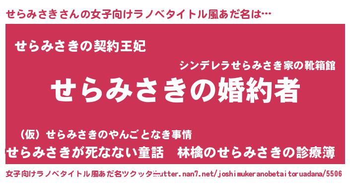 | ファンタジー風あだ名 | 『エターナルセラミサキー』『セラフェル』 |