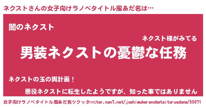 | 意味不明あだ名 | 『自称ネクスト』『つくし科ネクスト属』 |