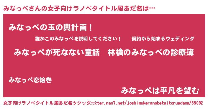 | 意味不明あだ名 | 『住所不定無職みなっぺ(68歳)』 |