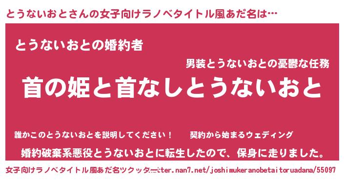 | 男性向けラノベタイトル風あだ名 | 『はたらくとうないおとさま!』 |