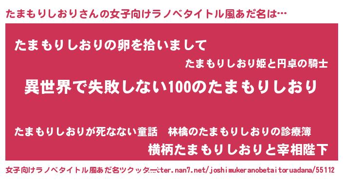 | 男性向けラノベタイトル風あだ名 | 『たまもりしおりという概念が存在しない退屈な世界 』 |