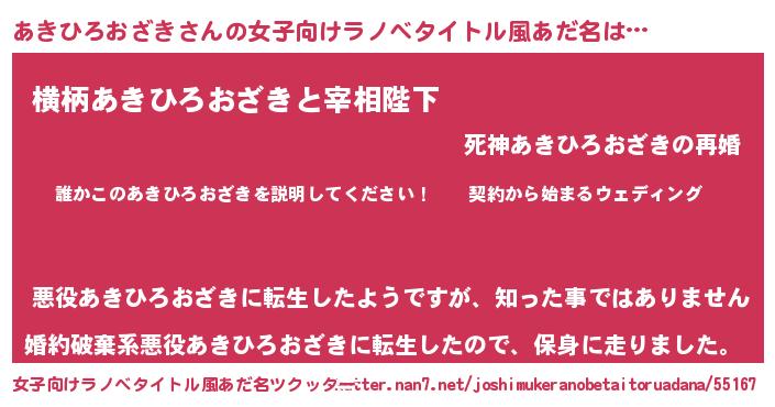 | 男性向けラノベタイトル風あだ名 | 『アキヒロオザキアートオンライン』 |