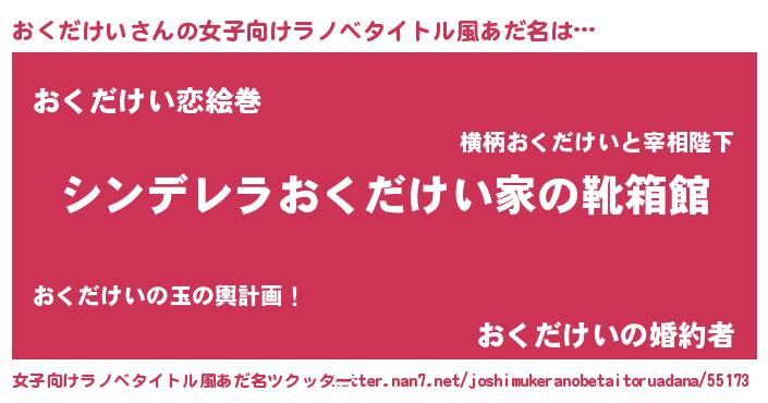 | 男性向けラノベタイトル風あだ名 | 『冴えないおくだけいの育てかた』 |