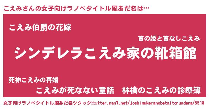 | 男性向けラノベタイトル風あだ名 | 『緋弾のコエミ』『魔弾の王とこえみ』 |