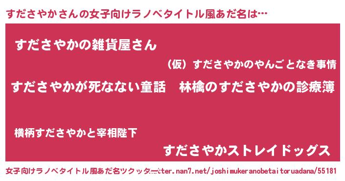 | 意味不明あだ名 | 『住所不定無職すださやか(40歳)』 |
