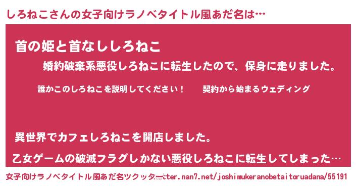 | 男性向けラノベタイトル風あだ名 | 『シロネコアートオンライン』 |
