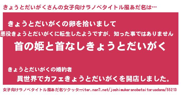 | 男性向けラノベタイトル風あだ名 | 『はたらくきょうとだいがくさま!』 |