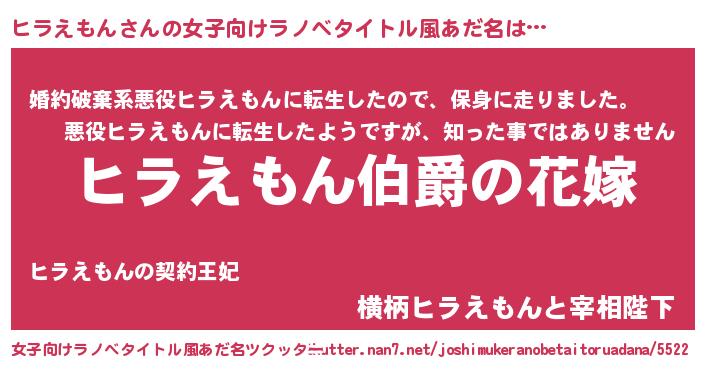 | 意味不明あだ名 | 『ヒラえもんフォーエバー』 |