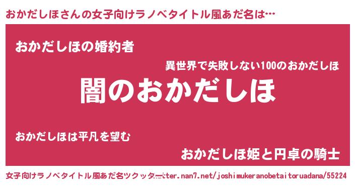 | 男性向けラノベタイトル風あだ名 | 『Re:おかだしほから始める異世界生活』 |