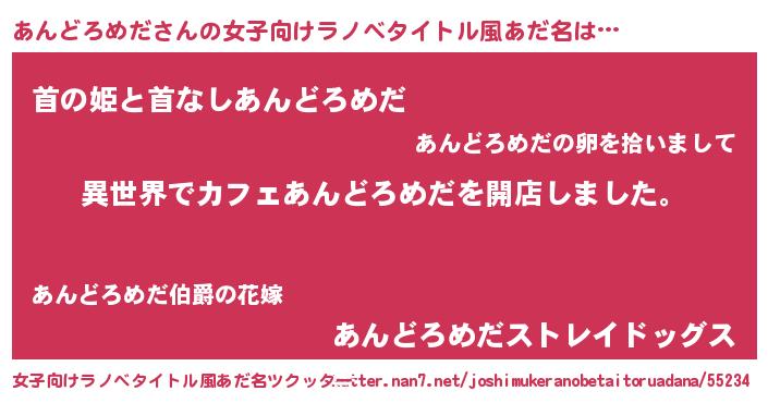 | 男性向けラノベタイトル風あだ名 | 『誰もが恐れるあのあんどろめだが、ぼくの専属メイドになるようです。』 |