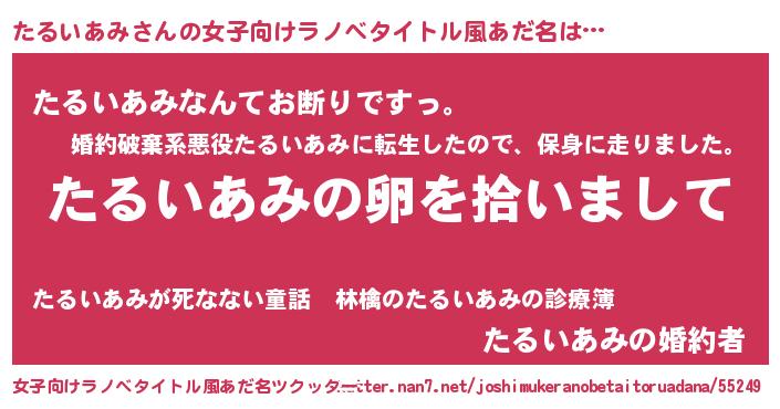 | 男性向けラノベタイトル風あだ名 | 『たるいあみの嫁は女の子じゃないと思った?』 |
