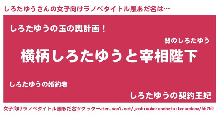 | 男性向けラノベタイトル風あだ名 | 『しろたゆうに滅ぼされるだけの簡単なお仕事です』 |
