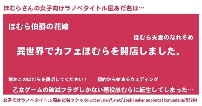 | ヘコむあだ名 | 『ほむら(笑)』『豆乳』『ほむにー』 |