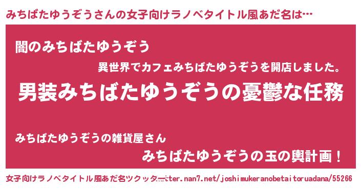| 男性向けラノベタイトル風あだ名 | 『うちのみちばたゆうぞうが世界を掌握している!』 |