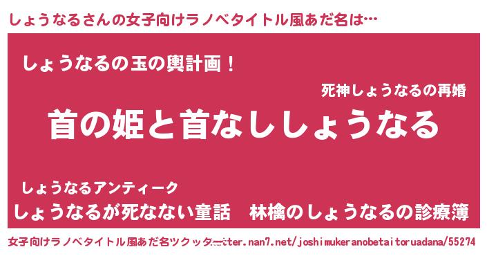 | 男性向けラノベタイトル風あだ名 | 『はたらくしょうなるさま!』 |