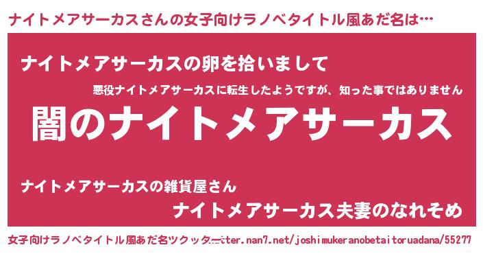 | 胡散臭い通販商品みたいなあだ名 | 『テレビで話題の高麗人参…その名も「ナイトメアサーカス」』 |