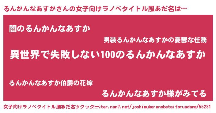 | 男性向けラノベタイトル風あだ名 | 『るんかんなあすかという概念が存在しない退屈な世界 』 |