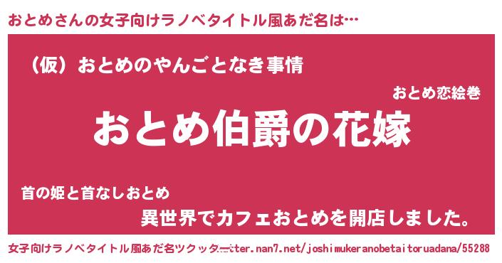 | 男性向けラノベタイトル風あだ名 | 『うちの娘の為ならば、俺はもしかしたらおとめも倒せるかもしれない。』 |