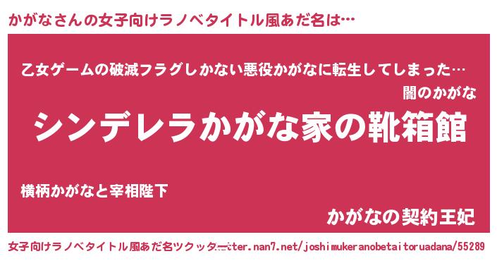 | 男性向けラノベタイトル風あだ名 | 『冴えないかがなの育てかた』 |