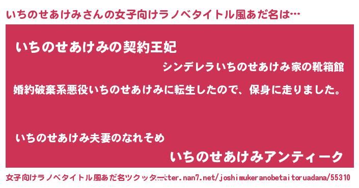 | 男性向けラノベタイトル風あだ名 | 『転生したらいちのせあけみだった件』 |