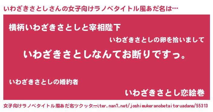 | 男性向けラノベタイトル風あだ名 | 『魔法科高校のいわざきさとし』 |
