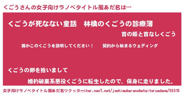 | 男性向けラノベタイトル風あだ名 | 『クゴウアートオンライン』 |