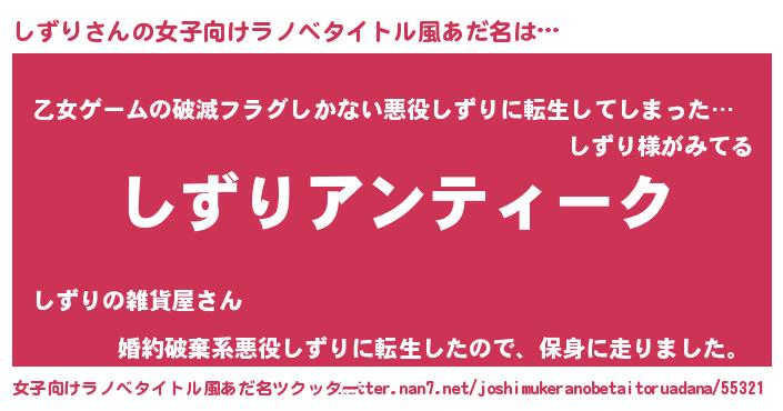 | 男性向けラノベタイトル風あだ名 | 『魔法科高校のしずり』 |