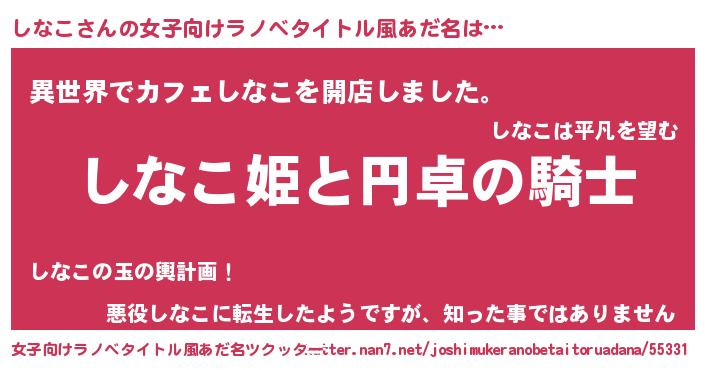 | 男性向けラノベタイトル風あだ名 | 『しなこの憂鬱』 |