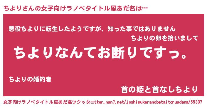 | 男性向けラノベタイトル風あだ名 | 『魔法科高校のちより』 |