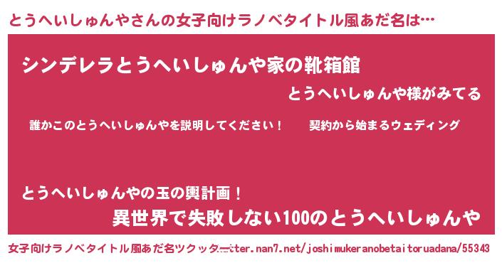 | 胡散臭い通販商品みたいなあだ名 | 『億万長者になれるブレスレット…その名も「とうへいしゅんや」』 |