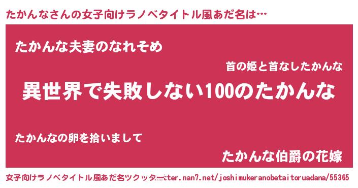 | 男性向けラノベタイトル風あだ名 | 『たかんなという概念が存在しない退屈な世界 』 |