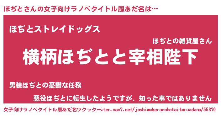 | 意味不明あだ名 | 『自称ほぢと』『住所不定無職ほぢと(6歳)』 |
