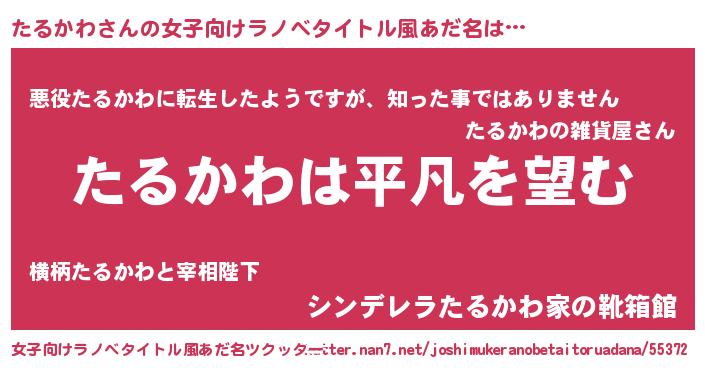 | 男性向けラノベタイトル風あだ名 | 『ダンジョンにたるかわを求めるのは間違っているだろうか』 |