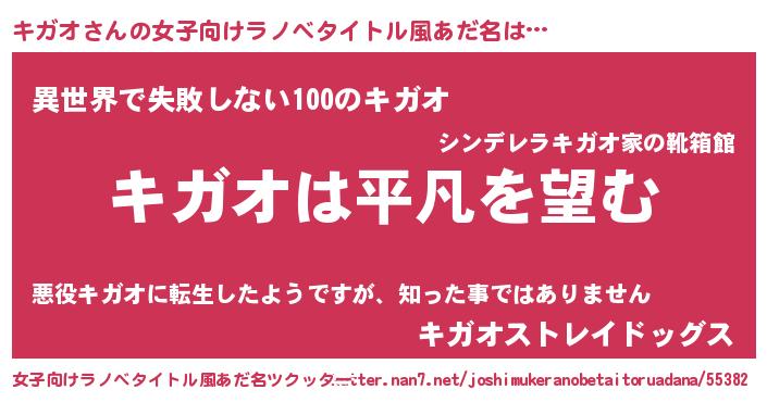 | ヒーロー風カッコイイあだ名 | 『暗黒騎士キガ』『ネオキガオ』 |