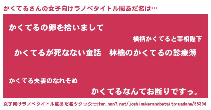 | ヘコむあだ名 | 『かくぷりん』『かくてる(笑)』 |