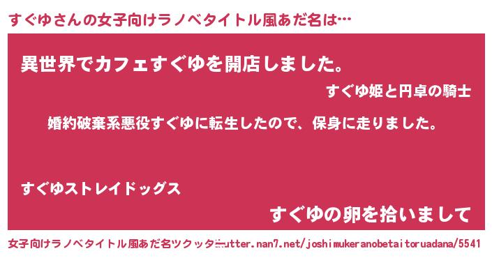 | 男性向けラノベタイトル風あだ名 | 『スグユスレイヤー』 |