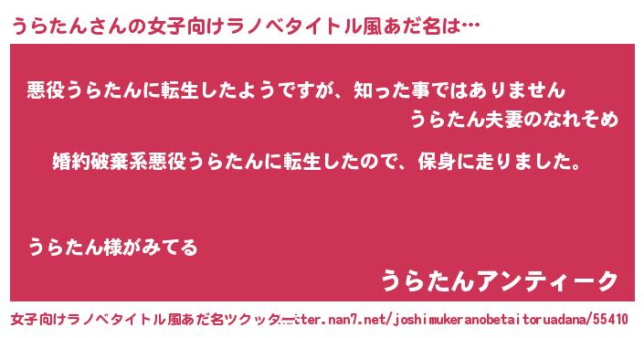 | 男性向けラノベタイトル風あだ名 | 『ウラタンスレイヤー』 |