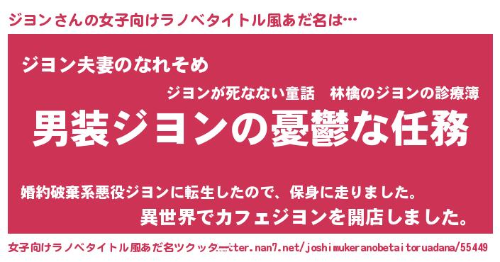 | 男性向けラノベタイトル風あだ名 | 『うちのジヨンが世界を掌握している!』 |