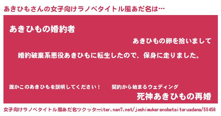 | 男性向けラノベタイトル風あだ名 | 『アキヒモスレイヤー』 |