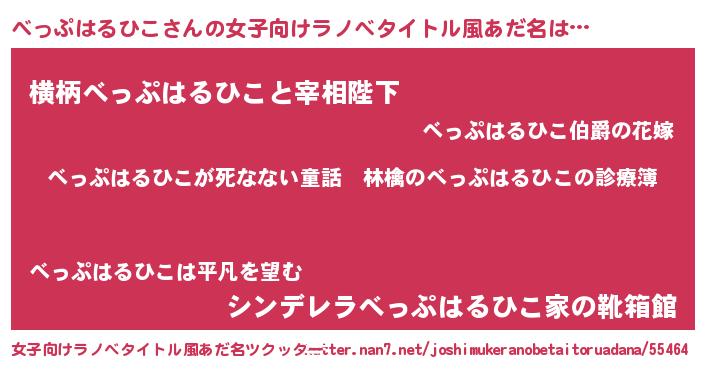 | 男性向けラノベタイトル風あだ名 | 『魔弾の王とべっぷはるひこ』 |