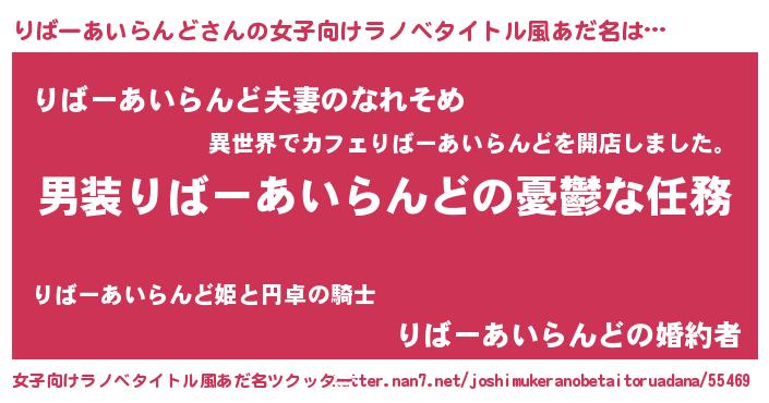 | 市区町村名 | 『りば田谷区』『りば島市』 |