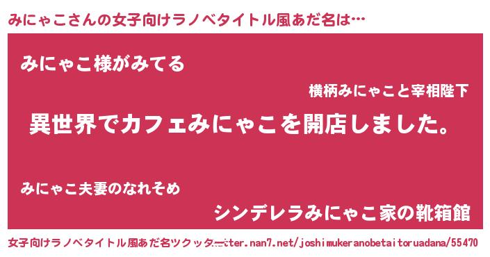 | 男性向けラノベタイトル風あだ名 | 『誰もが恐れるあのみにゃこが、ぼくの専属メイドになるようです。』 |