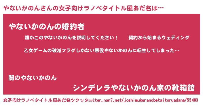 | 意味不明あだ名 | 『住所不定無職やないかのん(7歳)』 |