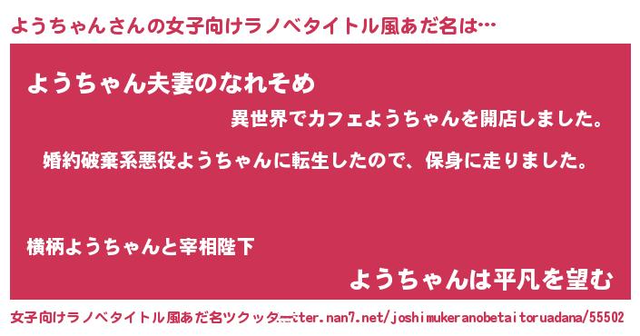 | 男性向けラノベタイトル風あだ名 | 『ヨウチャンスレイヤー』 |