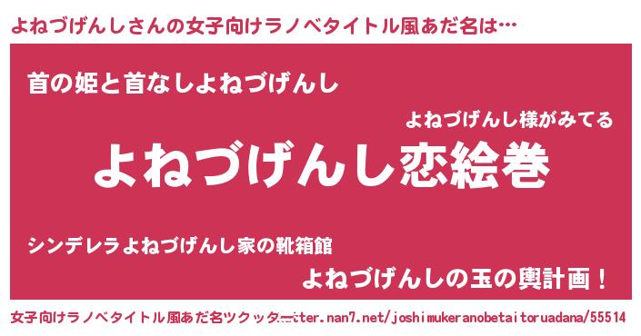 | 男性向けラノベタイトル風あだ名 | 『ノーゲーム・ノーヨネヅゲンシ』 |